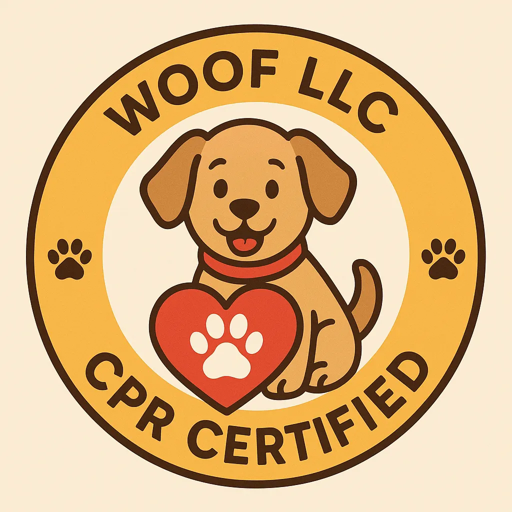 At Woof LLC, your pet’s safety is always our top priority. That’s why every member of our team is certified in Pet CPR and First Aid through the RECOVER Initiative — the gold standard in veterinary emergency training. This certification means that if a pet ever experiences a health emergency while in our care, our staff are trained to respond calmly, quickly, and effectively. From recognizing signs of distress to performing CPR and first aid, we’re prepared to act when seconds matter most.